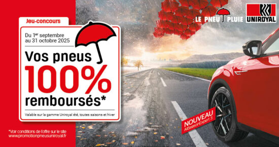 Du 1er septembre au 31 octobre 2025, profitez du jeu-concours de la marque Uniroyal ! Bénéficiez de vos pneus 100% remboursés* valable […]